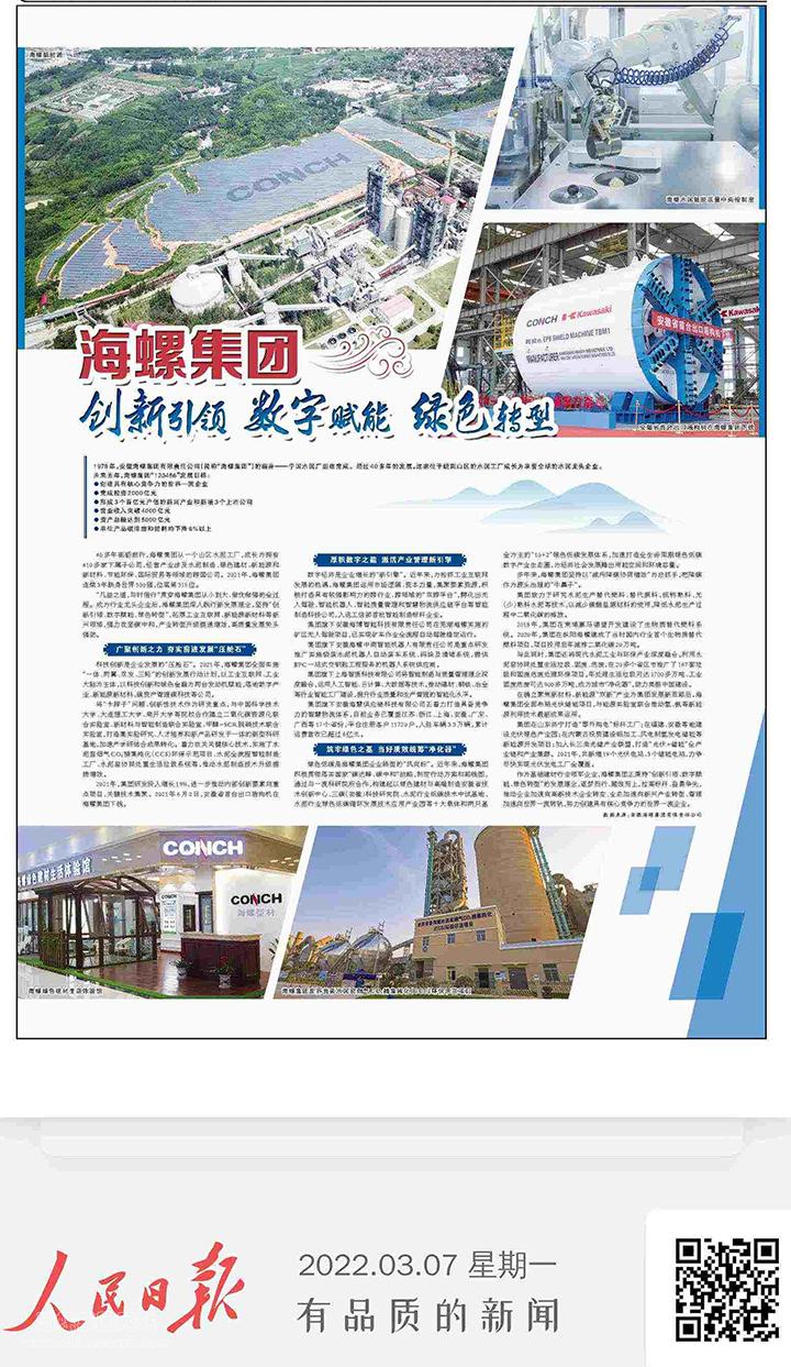 “凡益之道,與時偕行”貫穿海螺集團從小到大、做優(yōu)做強的全過程。成為行業(yè)龍頭企業(yè)后,海螺集團深入踐行新發(fā)展理念,堅持“創(chuàng)新引領、數(shù)字賦能、綠色轉型”,拓展工業(yè)互聯(lián)網(wǎng)、新能源新材料等新興領域,強力攻堅碳中和,產(chǎn)業(yè)轉型升級提速增效,高質量發(fā)展勢頭強勁。