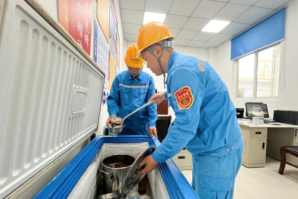 發(fā)運(yùn)棧臺,質(zhì)量控制員“王姐”剛剛?cè)⊥陿?,?zhǔn)備送往化驗室檢驗。