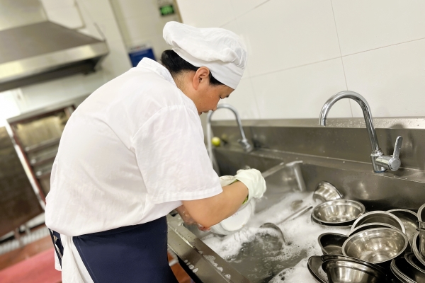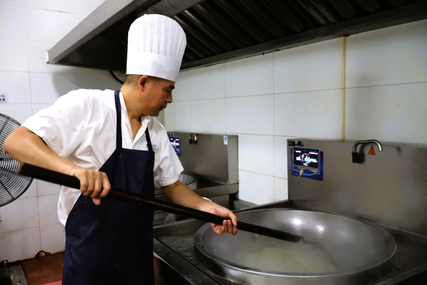 循著香味來到員工食堂后廚,服務(wù)員“許姐”麻溜地清洗著餐盤,廚師“老劉”正揮舞著鍋鏟,為頂著高溫辛苦勞作的同事們精心烹飪飯菜。