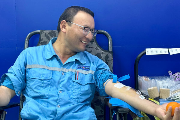 參與本次獻(xiàn)血有的是多次獻(xiàn)血的“老將”,有的是第一次獻(xiàn)血的“新手”。廣英公司碼頭工段司磅員成家興是在場年紀(jì)最大的志愿者,當(dāng)?shù)弥窘M織獻(xiàn)血時(shí),沒有獻(xiàn)血經(jīng)驗(yàn)的他第一時(shí)間報(bào)了名,“我是第一次參加獻(xiàn)血,很激動(dòng)也很榮幸,想到我的血液能夠幫助到他人,就覺得很有意義。”礦山分廠廠長助理瞿不理多次參加無償獻(xiàn)血活動(dòng),這次他又積極報(bào)名,奉獻(xiàn)大愛,獻(xiàn)血400毫升,“在周圍朋友同事的感染下,我嘗試了無償獻(xiàn)血,雖然中途有過中斷,但我很慶幸沒有放棄,之后我也會(huì)繼續(xù)堅(jiān)持下去”。