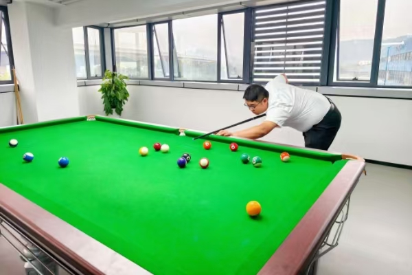 在臺(tái)球比賽區(qū)域,選手全神貫注地瞄準(zhǔn)著目標(biāo)球,每一次精準(zhǔn)的推桿都伴隨著觀眾的驚嘆聲。