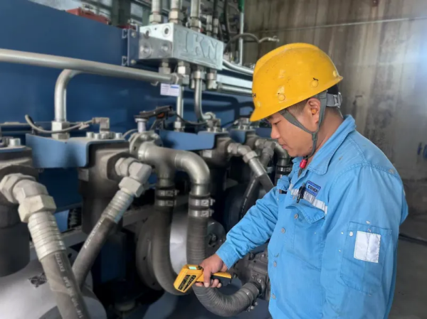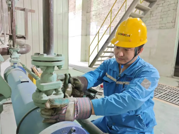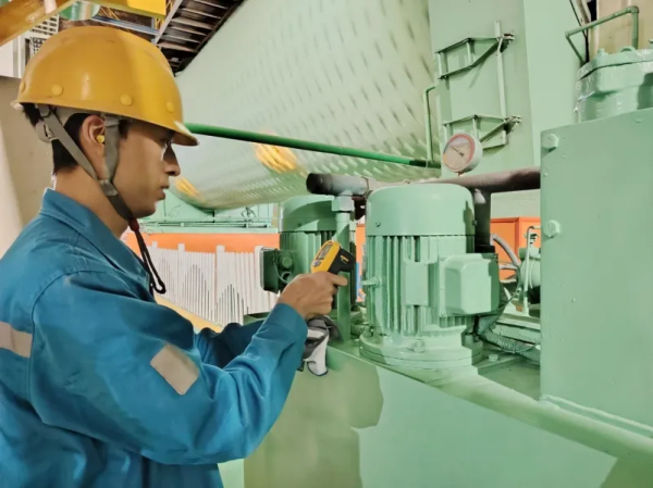 銅陵海螺楊兵在對生產(chǎn)線冷卻機(jī)油站進(jìn)行點(diǎn)檢