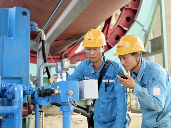 海螺中南肖德龍、劉志橙在調(diào)試鳳陽海螺設(shè)備