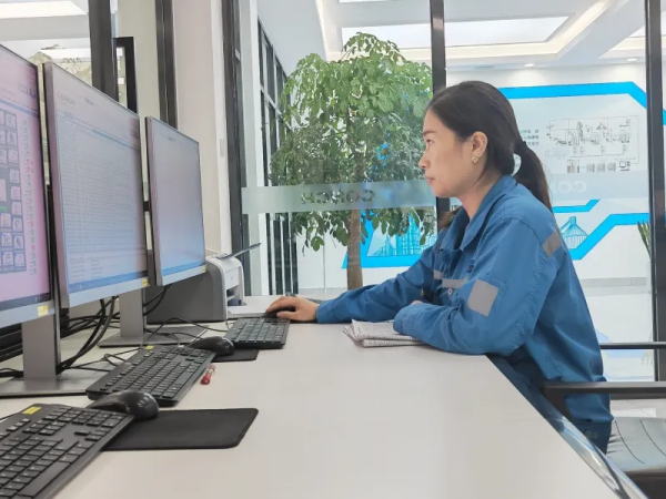 蕪湖海螺張芳認(rèn)真查看生產(chǎn)數(shù)據(jù)